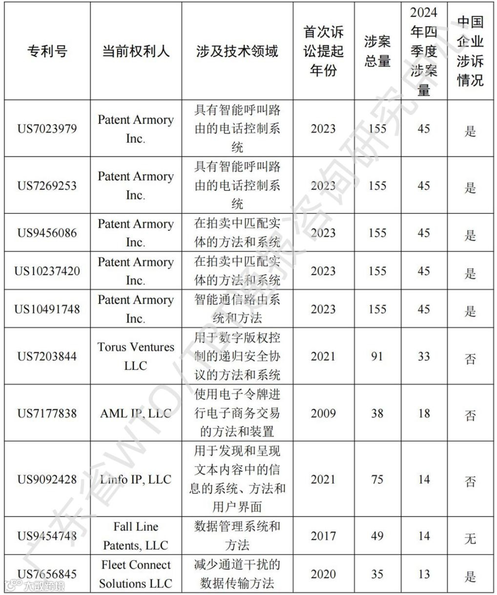 表2 2024年四季度高频涉案专利⁶