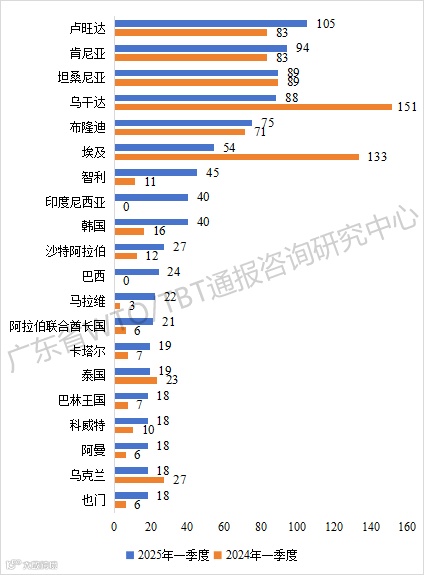 注:本表2024年一季度数据来源于本公众号《2024年一季度TBT通报和出口欧美产品受阻情况》。2025年一季度数据新增巴西。