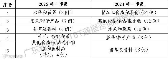 (2025年一季度数据来源于欧盟RASFF官网,收集于2025年4月9日;