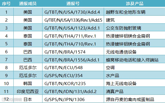 WTO技贸措施通报速递(10月31日)