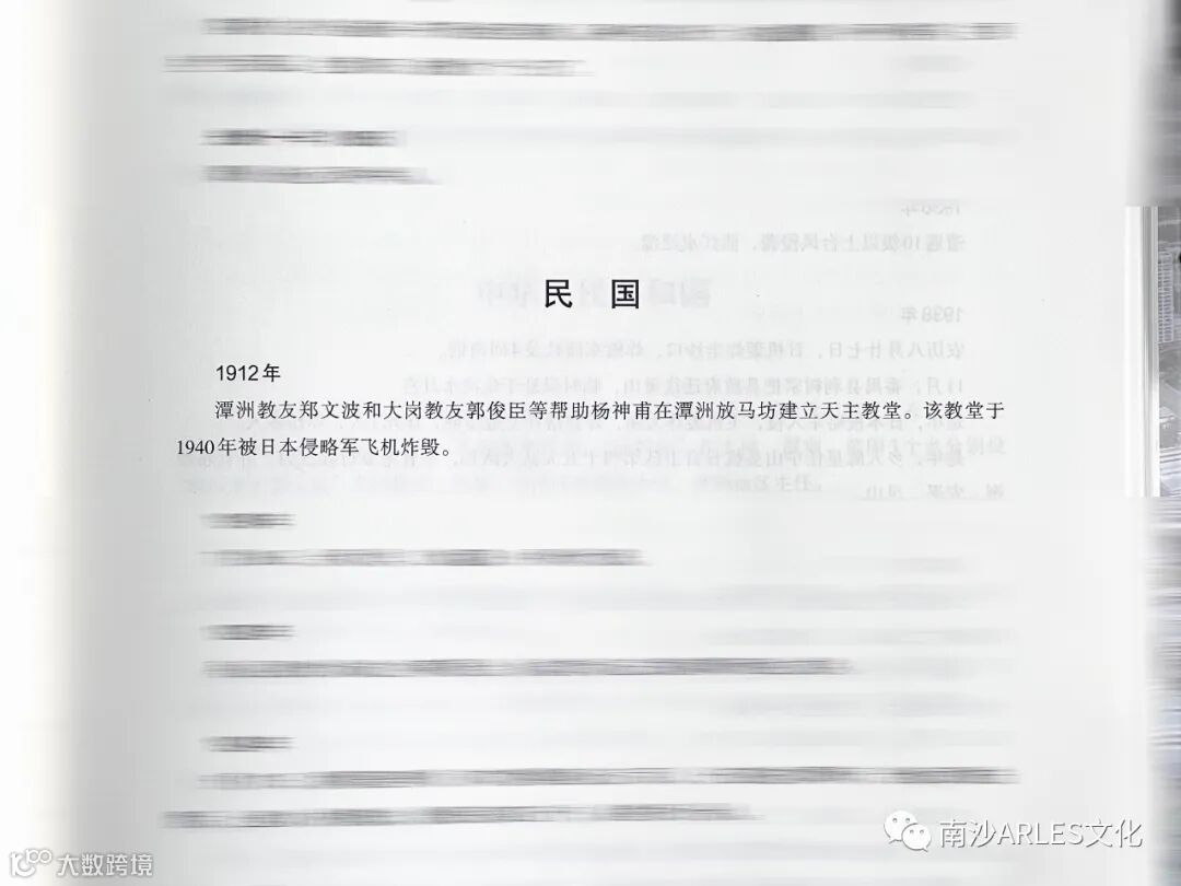 民国1912年,潭洲教友郑文波和大岗教友郭俊臣等帮助杨神甫在潭洲放马坊建立天主教堂。该教堂于1940年被日本侵略军飞机炸毁。