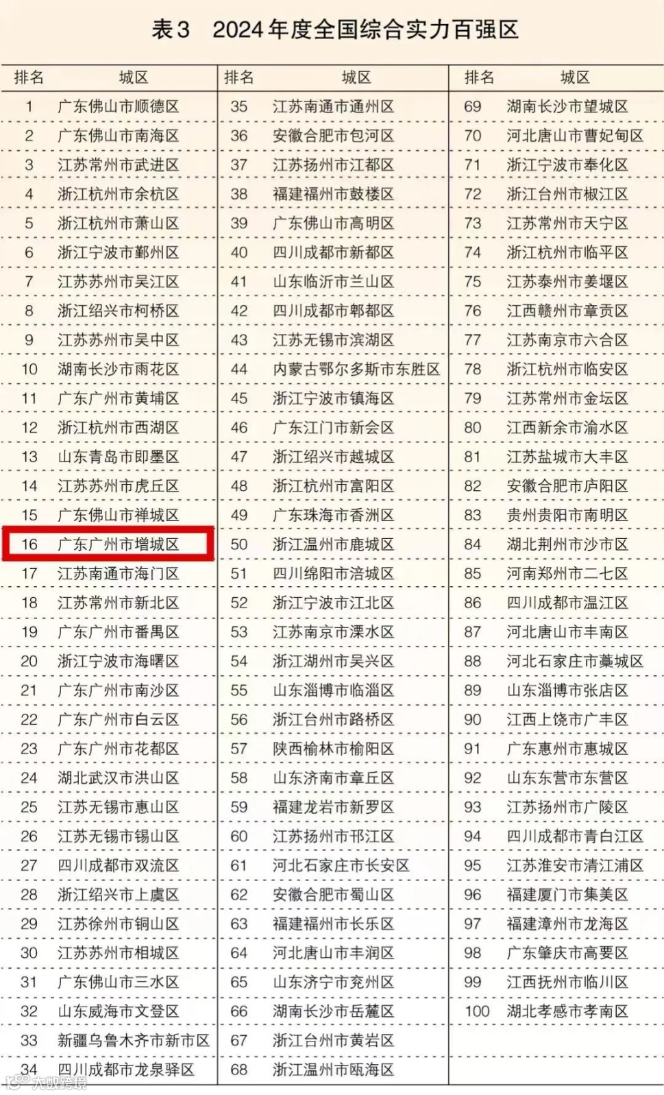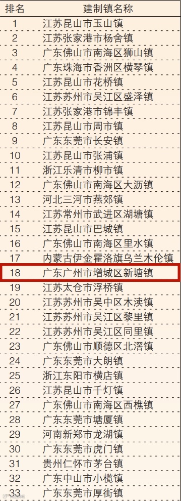 新塘镇再次上榜前20 位列第18位