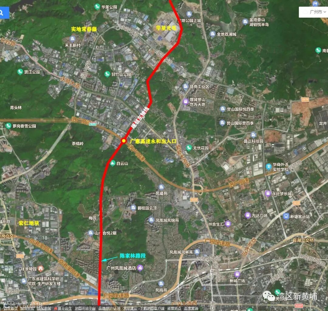 据了解,陈家林路往北通过隧道穿过白云山(增城)后,连接沧海五路并在与广惠高速交界处建设新的高速出入口。