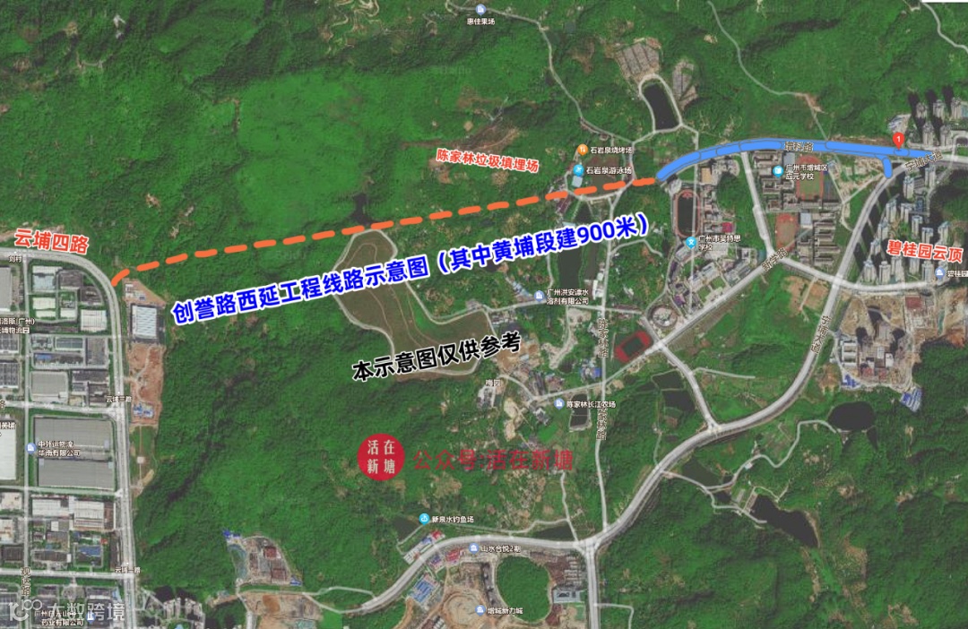 据了解,目前创誉路在增城区止于费得斯公学附近,新塘镇、凤凰城、翡翠绿洲等片区与黄 埔区云埔街道的交通联系受山体阻隔,需往南北两侧绕行开源大道或新新大道,便利性 低,急需补充一条东西向通道。