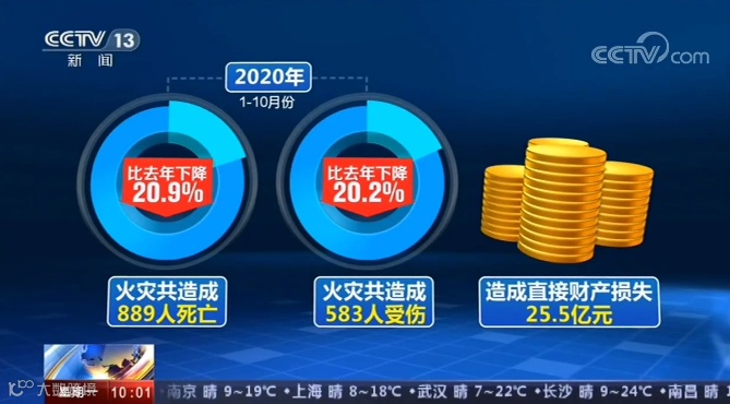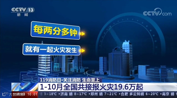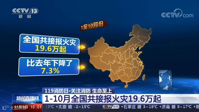 应急管理部消防救援局11月9日公布了今年1-10月全国火灾形势报告。数据显示,1-10月份,全国共接报火灾19.6万起,比去年下降了7.3%。