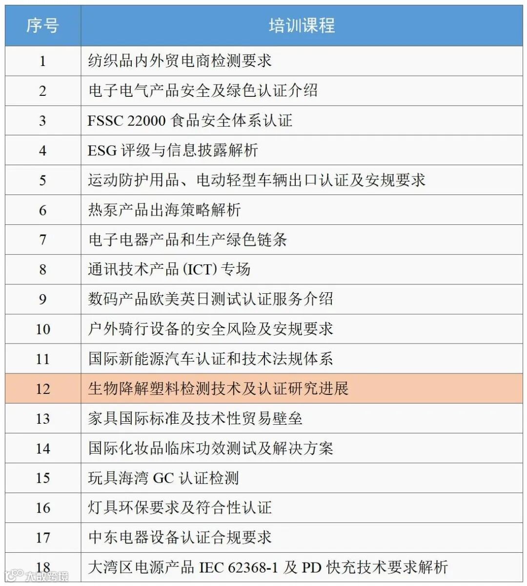 课程内容:在禁限塑和双碳绿色发展的背景下,对现有生物降解塑料降解性能的检测方法和认证要求进行讲解,帮助企业找准符合自身定位的发展路线。