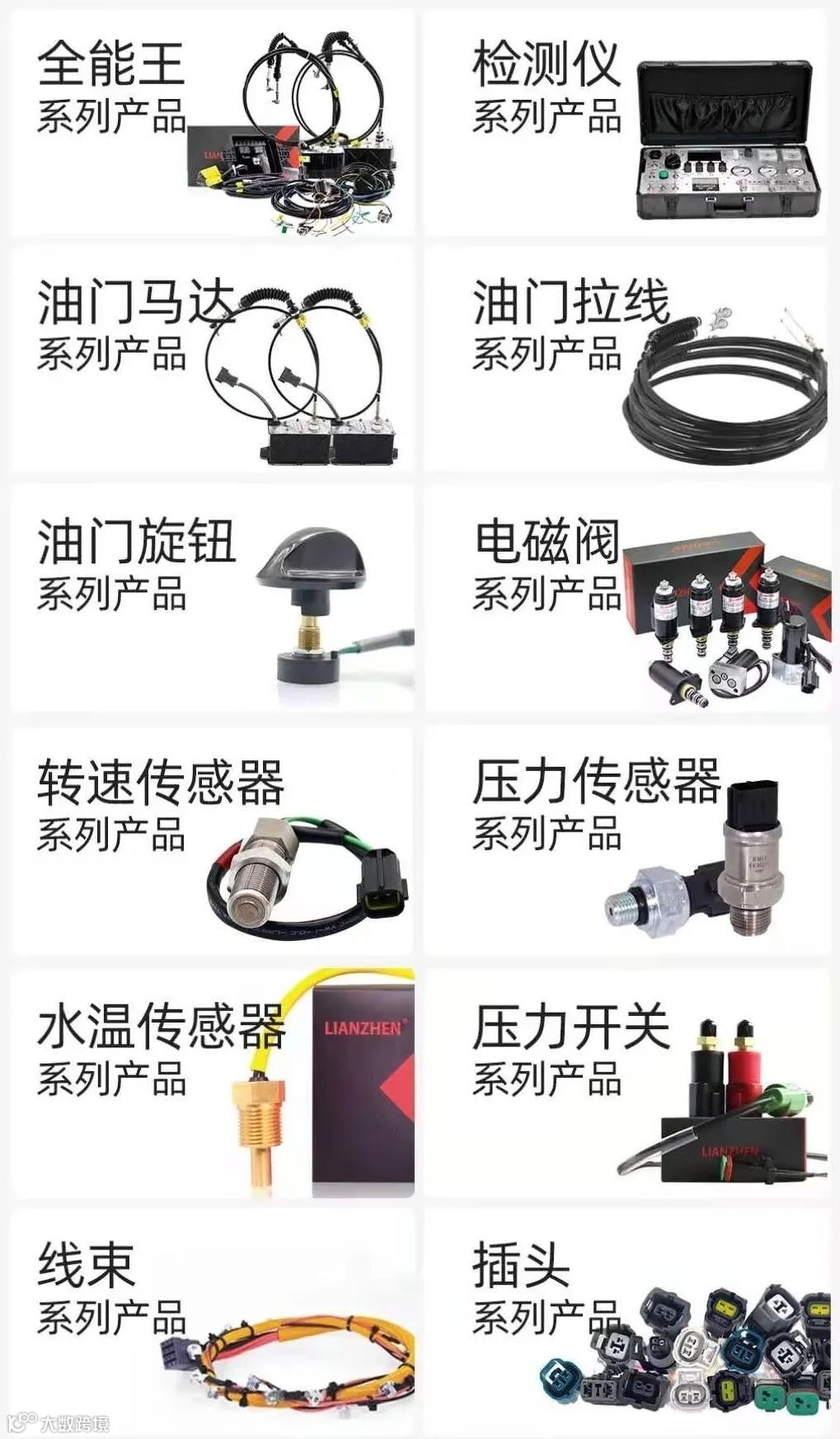 传感器、电磁阀、线束、液压泵等。