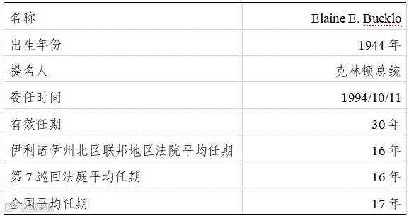 1994年10月,Bucklo就任伊利诺伊州北区联邦地区法院法官。其个人信息如下: