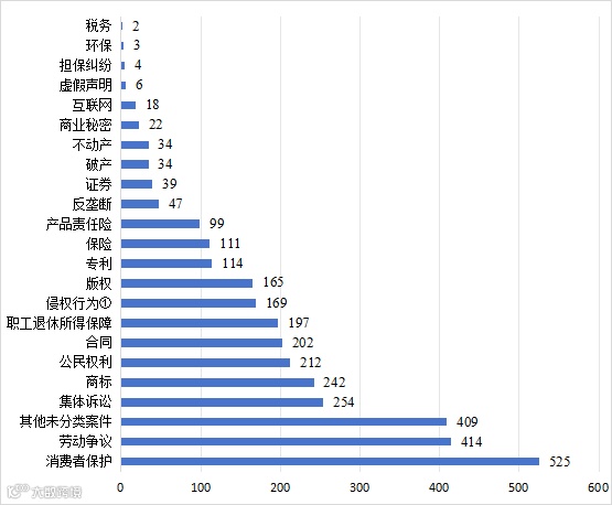 2014—2024年间Bucklo法官审理的案件类型主要集中在消费者保护、劳动争议、商标、集体诉讼等领域,其中审理的消费者保护案件最多,高达525件。商标案件量总体呈上升趋势。²