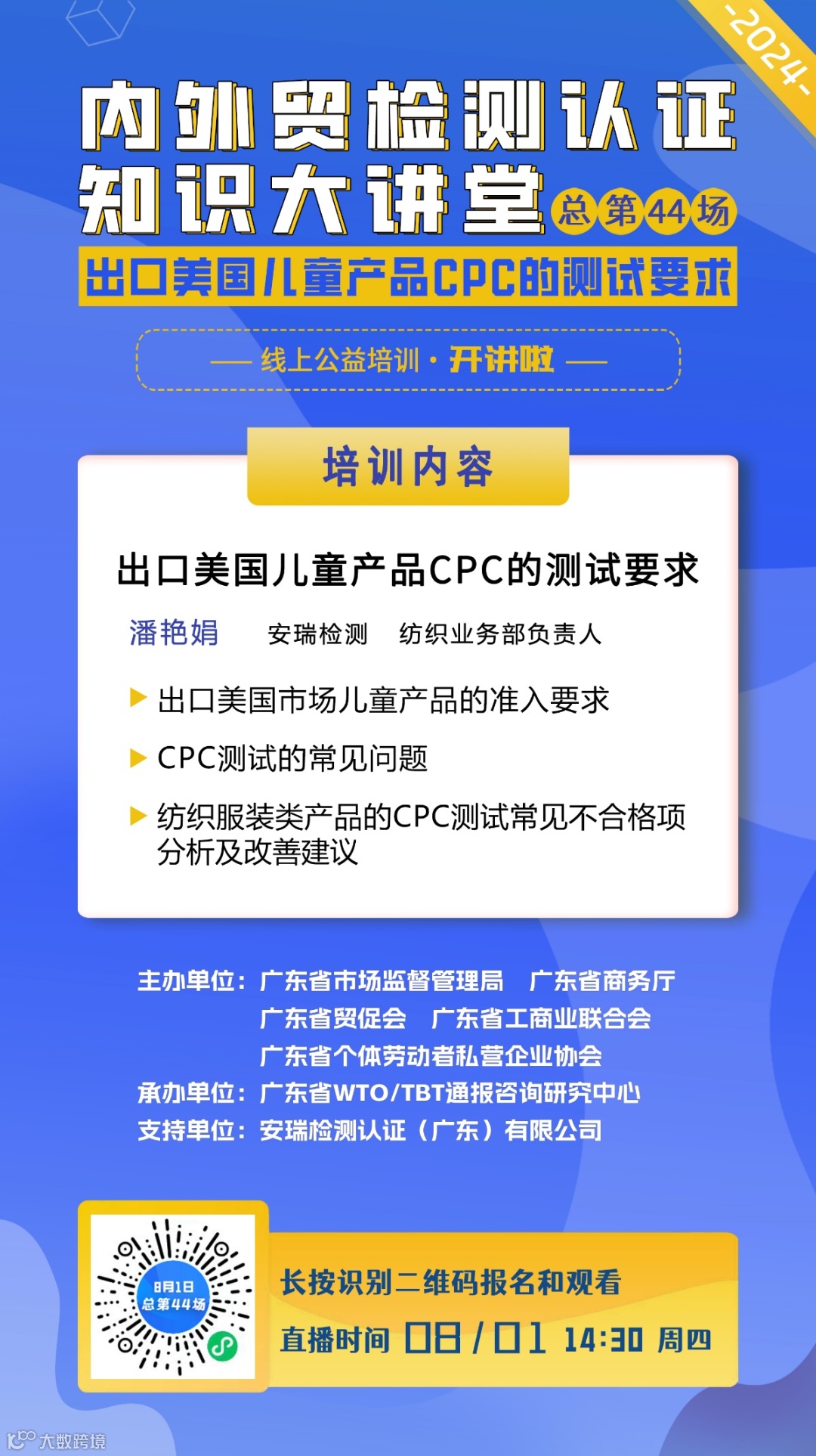 关注“广东技术性贸易措施”微信公众号,点击“专题栏目”中的“大讲堂”专栏即可观看当期培训和回顾往期培训。