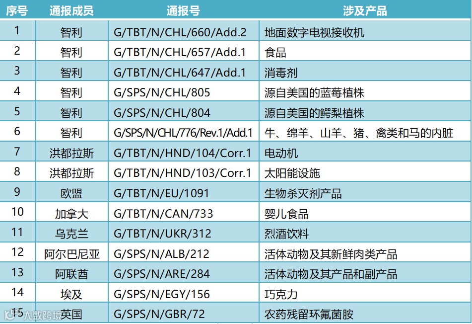 表:10月25日WTO成员通报明细表