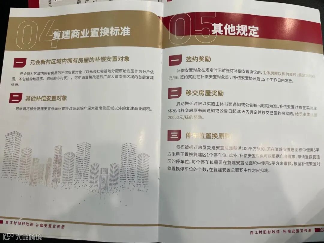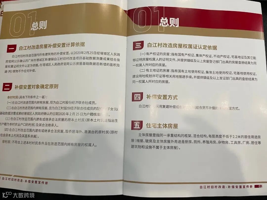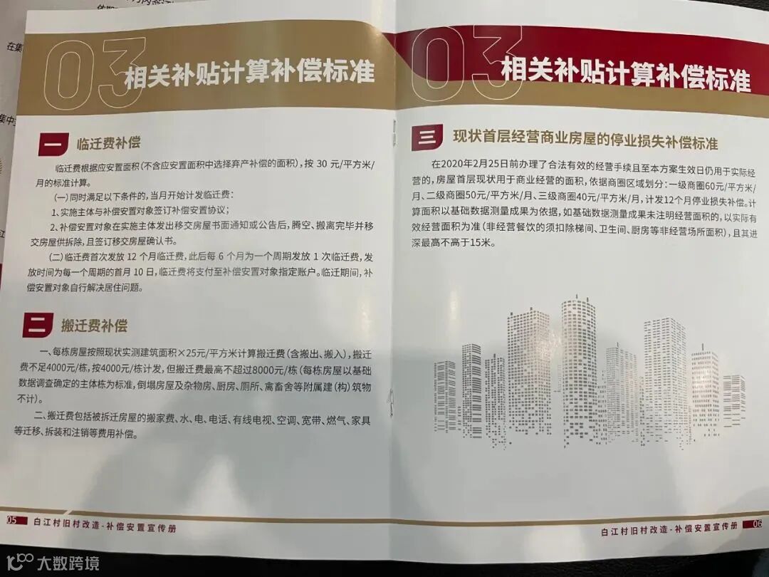 来看一下具体的白江村旧村改造补偿安置宣传册内容(以下资料均由村民朋友提供):