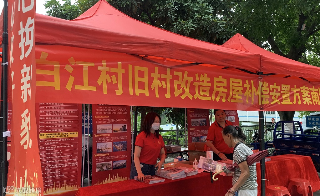 9月16日下午,新塘镇白江村入眼一片喜气洋洋的热烈红色,原来是白江村旧村改造项目部为了更好地向白江村村民宣传《白江村旧村改造房屋补偿安置方案》,分别在南顺、东宁、元会社设置了宣传点,并向村民发放《白江村旧村改造补偿安置宣传册》,一起来看看吧。