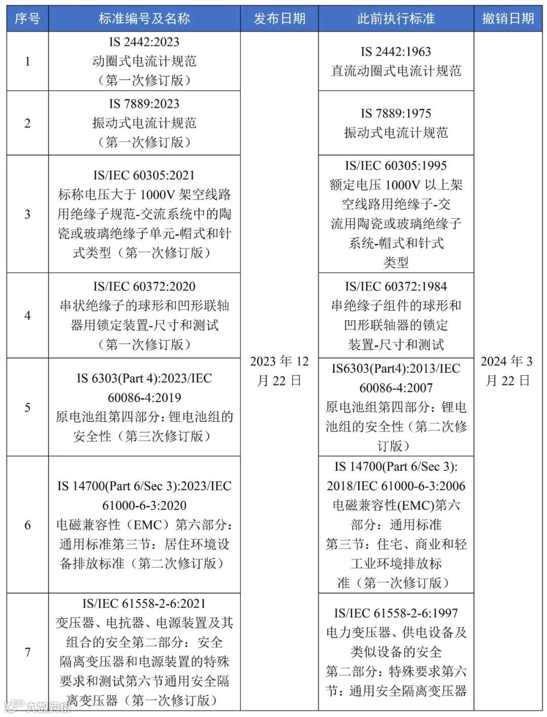 6. 印度标准局修订并发布电流计、锂电池等7项标准