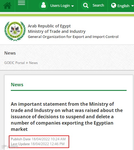 埃及方面表示,此举不是针对特定国家或特定公司,而是这些企业的证书已经过期,并且违反了埃及贸工部第43/2016号令。