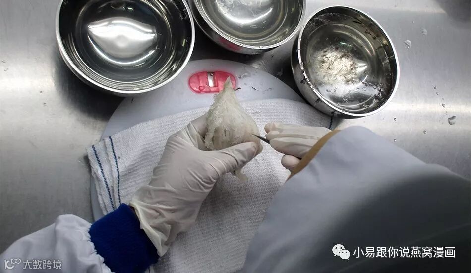 上一步说的清洁,只是简单用软毛刷将燕窝表面存在的蛋壳碎片、小污渍等刷洗,并用纯净水冲洗一下。而遇到燕窝里燕毛很多的燕窝,我们还需要挑毛,不然你以为燕窝能走到你们面前这么光鲜亮丽吗?但是在挑选之前还得消毒,避免禽流感的传染。而燕窝的消毒还是很讲究的,得放到不低于70摄氏度的蒸汽中不少于3.5S的消毒才算成功消毒。