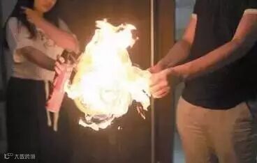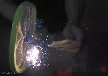 (实验:杀虫剂遇到电蚊拍后瞬间引燃,整个电蚊拍表面升起火焰。)