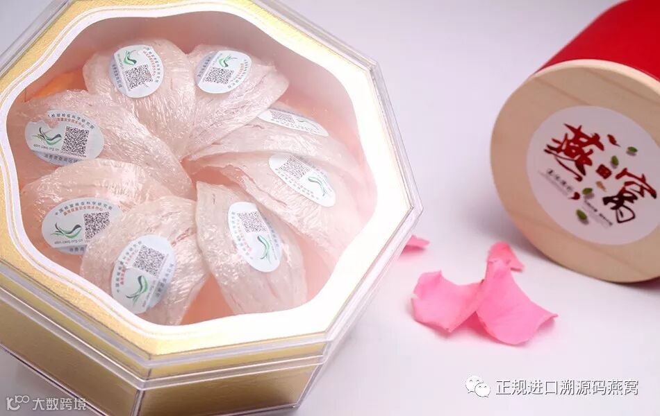 溯源燕窝每一盏都很有标签,这个标签记录了它的一切包括生产日期,生产厂家,单克重量......扫进去你就知道了,有大盏、中盏、小盏、三角盏由于世界上不可能有一模一样的两盏燕窝,所以每盒的盏数不尽相同。