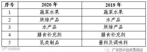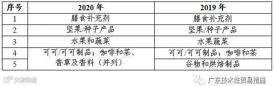表5 2019年和2020年FDA拒绝中国农食产品进口的