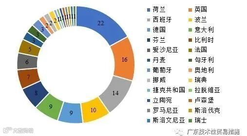 图7 2020年RASFF通报中国产农食产品的国家分布