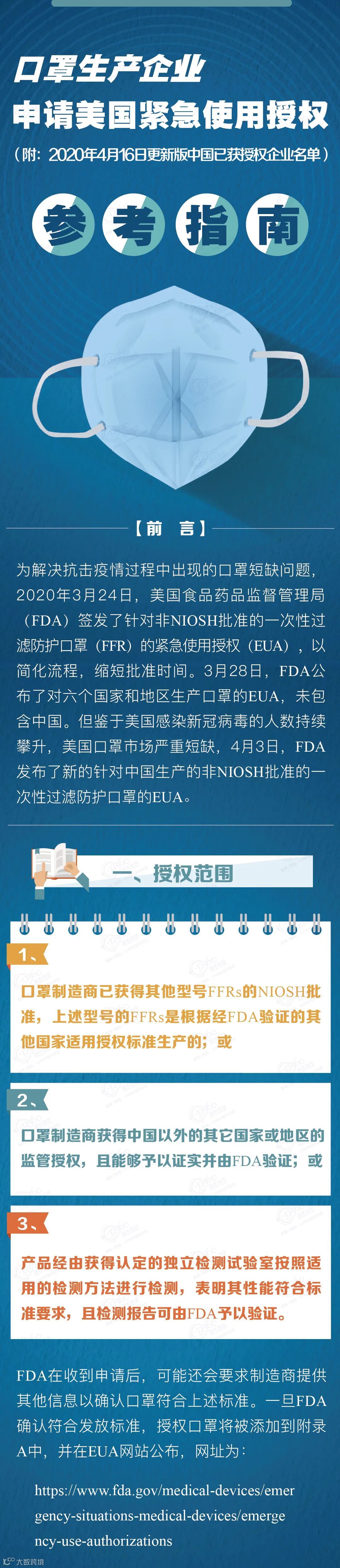 导读:口罩生产企业申请美国紧急使用授权参考指南。