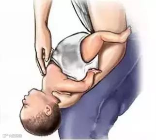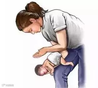 可以采取另外一个姿势,把孩子翻过来,躺在坚硬的地面或床板上,抢救者跪下或立于其足侧,或取坐位,并使患儿骑在抢救者的大腿上,面朝前。抢救者以两手的中指或食指,放在患儿胸廓下和脐上的腹部,快速向上重击压迫,但要很轻柔。重复,直至异物排出。