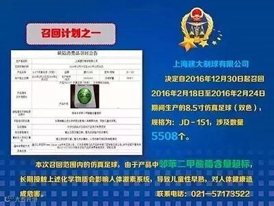 本次召回范围内的仿真足球,由于产品中邻苯二甲酸酯含量超标,长期接触上述化学物质会影响人体激素系统,导致儿童性早熟,对人体健康造成危害。