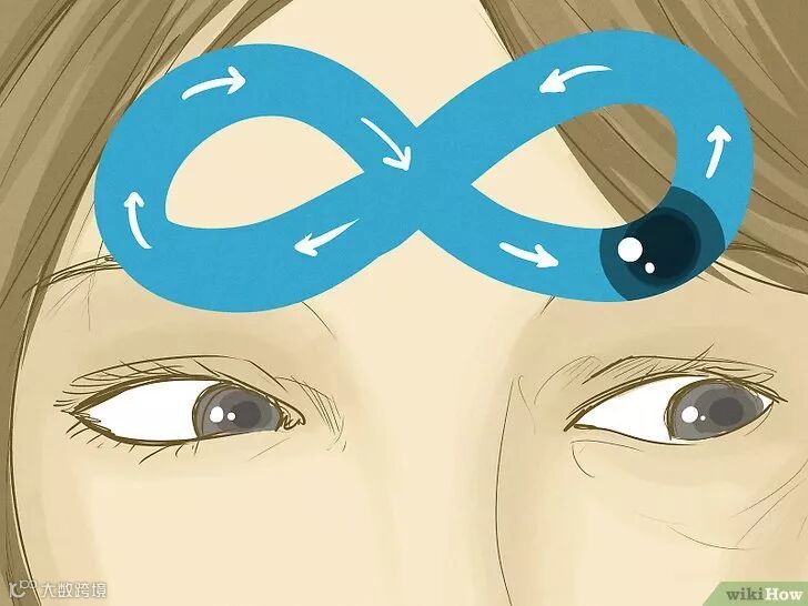 ●用眼睛画一个无限符号。想象你的眼前横放着一个阿拉伯数字8,像是画画一样,缓慢地移动你的视线,想象你用你的眼睛临摹这个8。