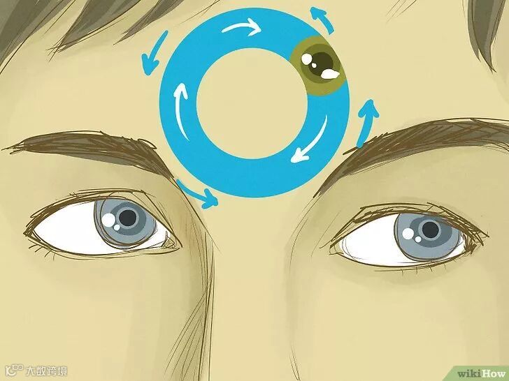 ●和之前的方法一样,往斜上或斜下方看,并保持几秒,拉伸特定的眼部肌肉。当你向左上方看的时候,会拉伸到左眼的上斜肌和右眼的下斜肌。