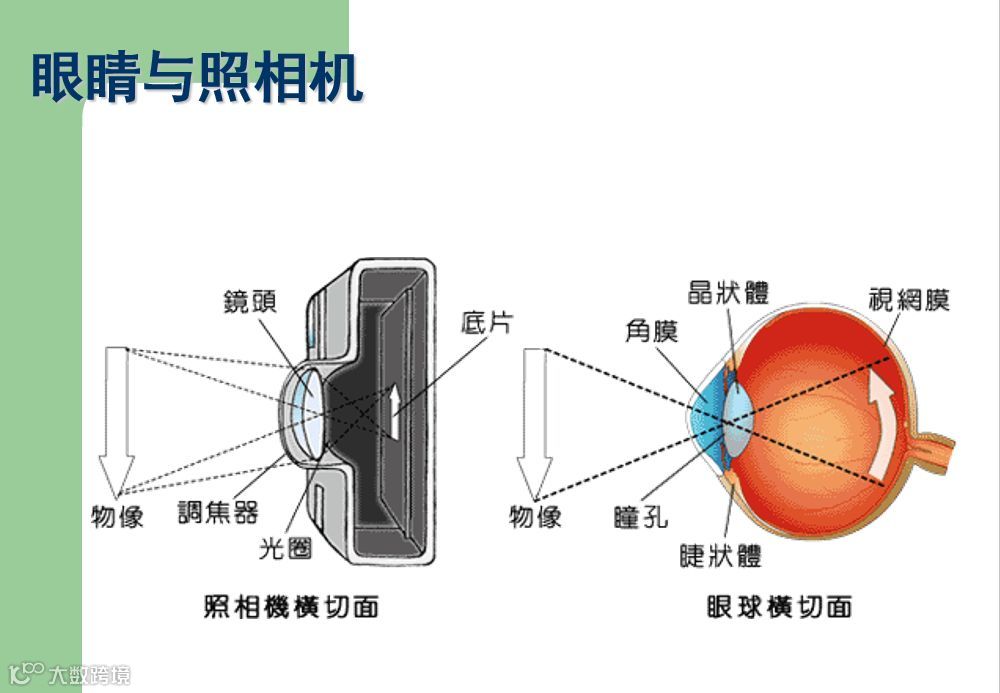 晶状体:双凸透镜,相当于19D的凸透镜。