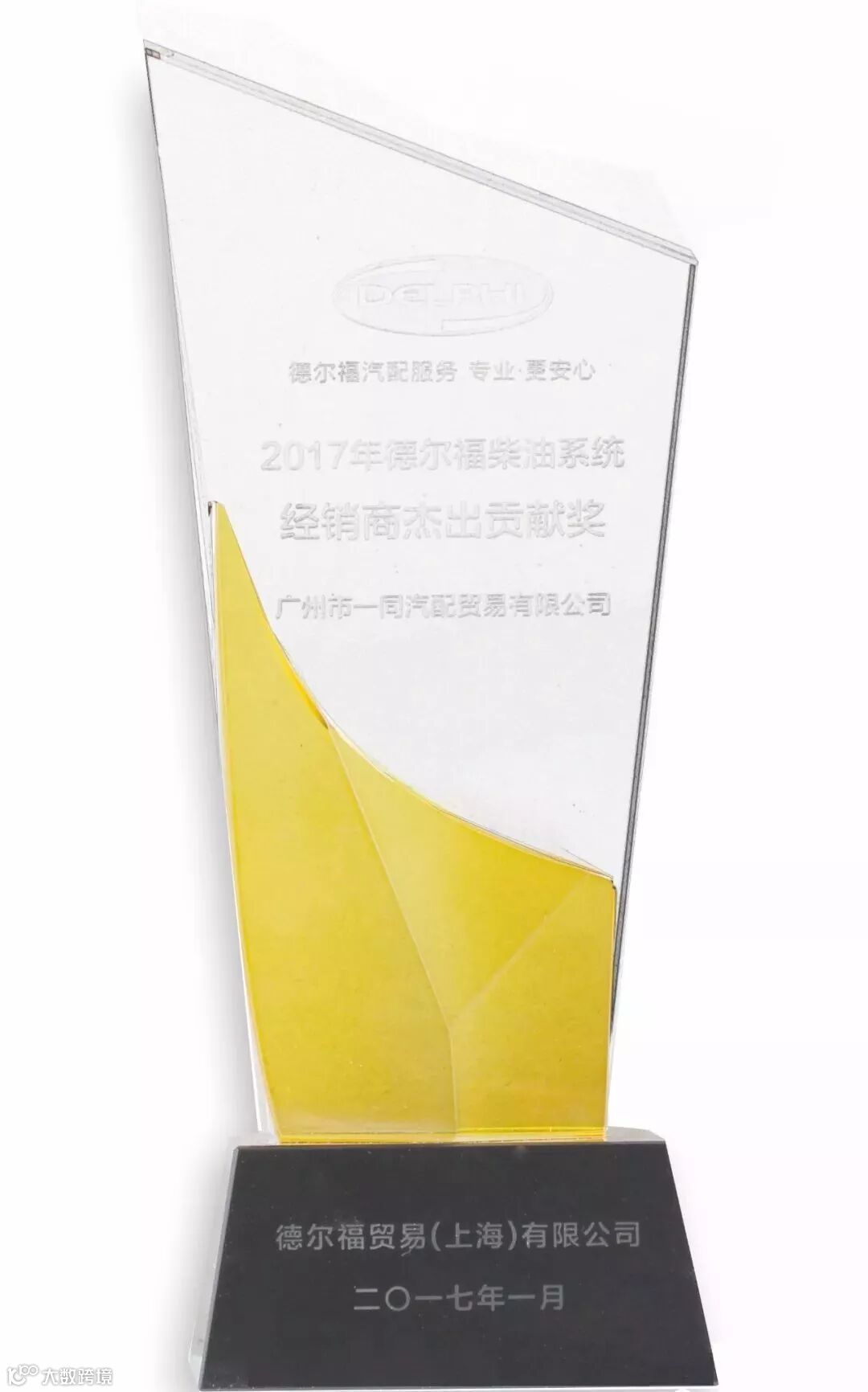 2017年1月获德尔福贸易(上海)有限公司“2016年德尔福柴油系统经销商杰出贡献奖”。