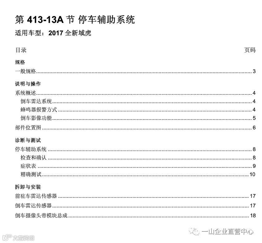 专业知识:2017全新域虎停车辅助系统维修知识