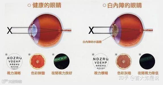 由于各种因素导致眼睛晶状体发生混浊,就叫做白内障。晶状体慢慢变混浊,白内障晶状体阻碍光线聚焦到视网膜上,就像相机镜头变混浊,看东西就会模糊了。