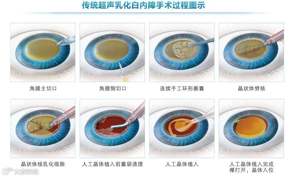 目前对已明显影响视力的白内障常见治疗办法是手术治疗。现在主流的手术是微切口超声乳化白内障吸除联合人工晶体植入术,还有飞秒激光白内障手术。