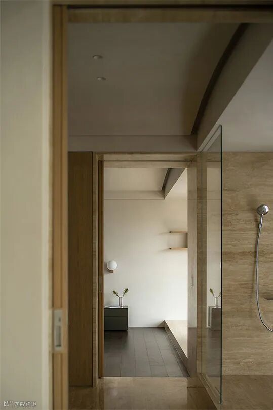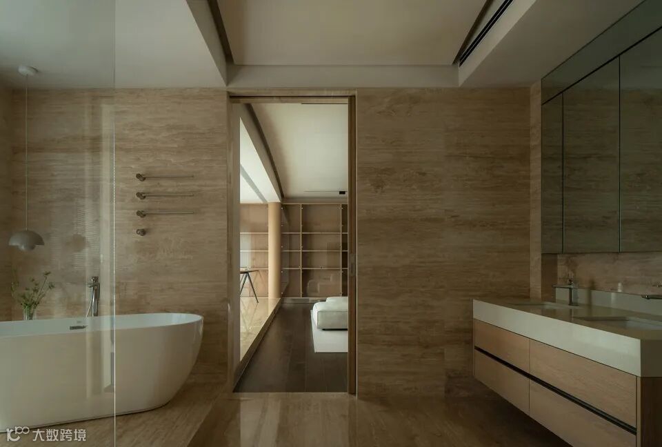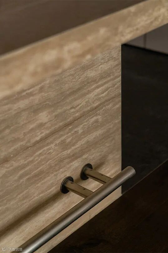 同样以浅咖色为主调,并充分利用大理石纹理元素,再加上温润柔和的自然木纹,营造一种宁静优雅回旋又温馨的空间