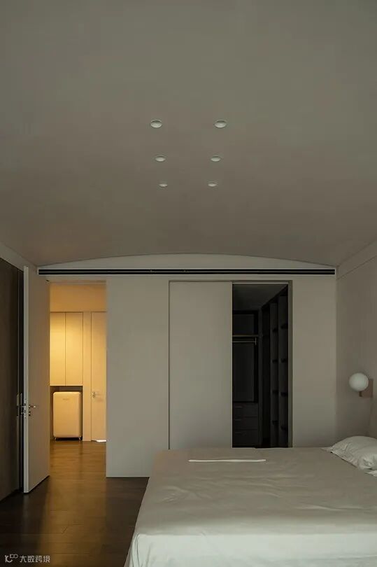 For people who like a quiet environment, coffee color is very suitable for dressing up the bedroom. The quiet beige wall and light-colored furniture create a soft and gentle feeling, and the combination of semi-circular ceiling and suspended ceiling makes the space three-dimensional composition rich and full