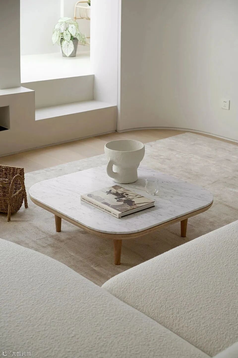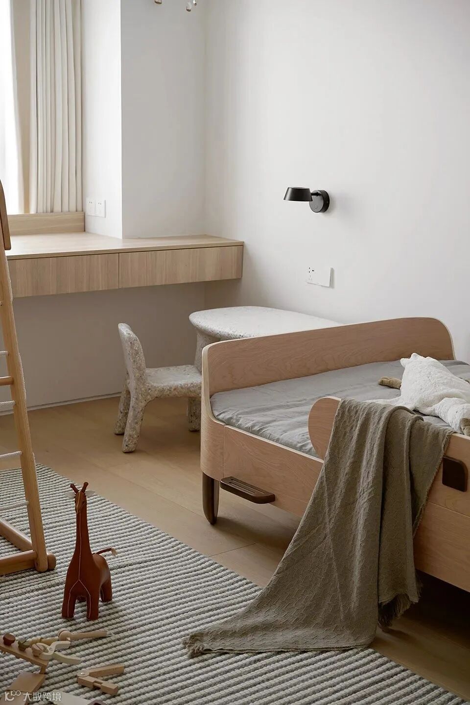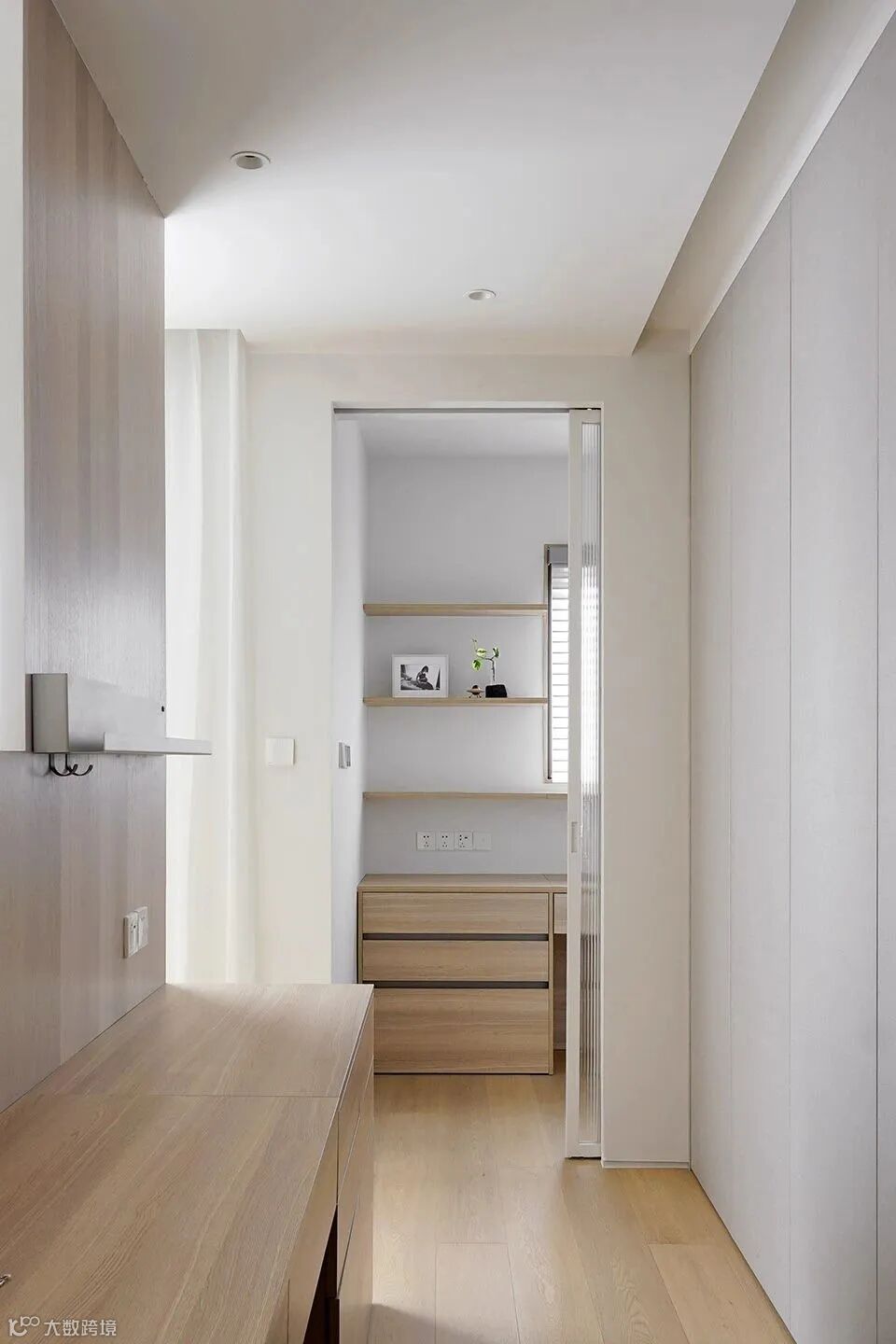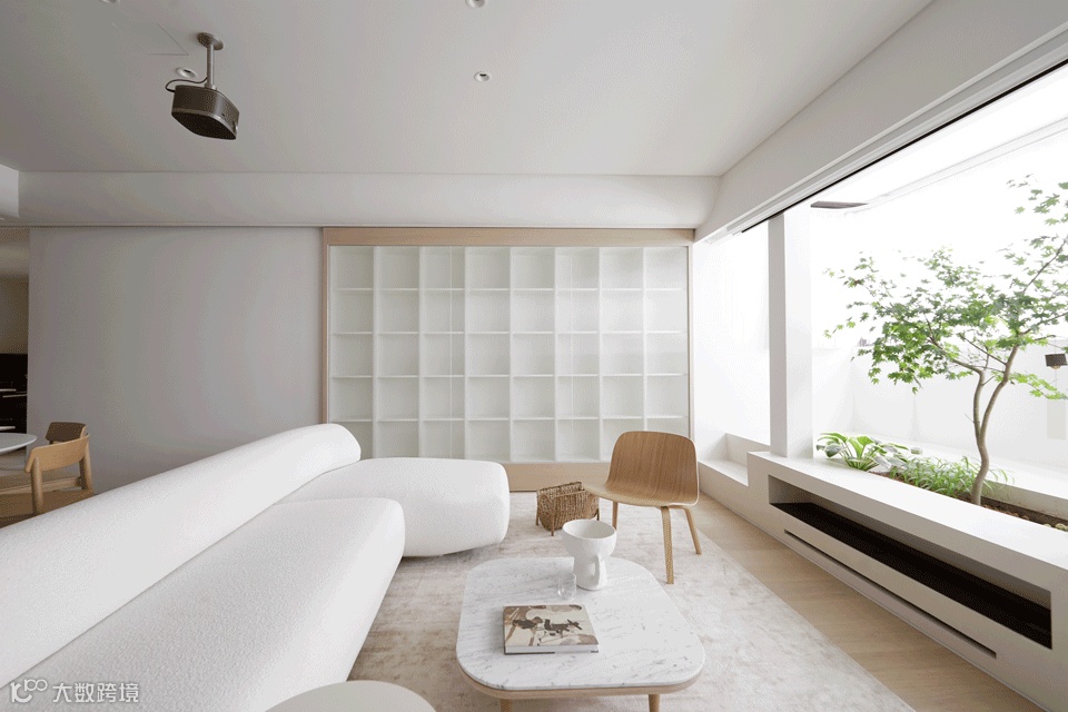 The living room is curved wall, so that the living room overall space more soft.Fireplaces and corrugated glass display cases make this home the softest place.