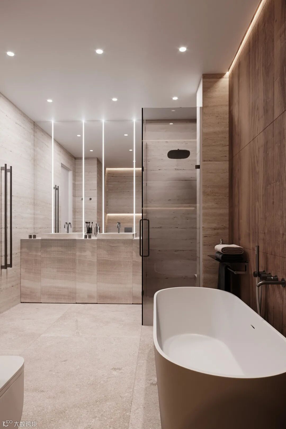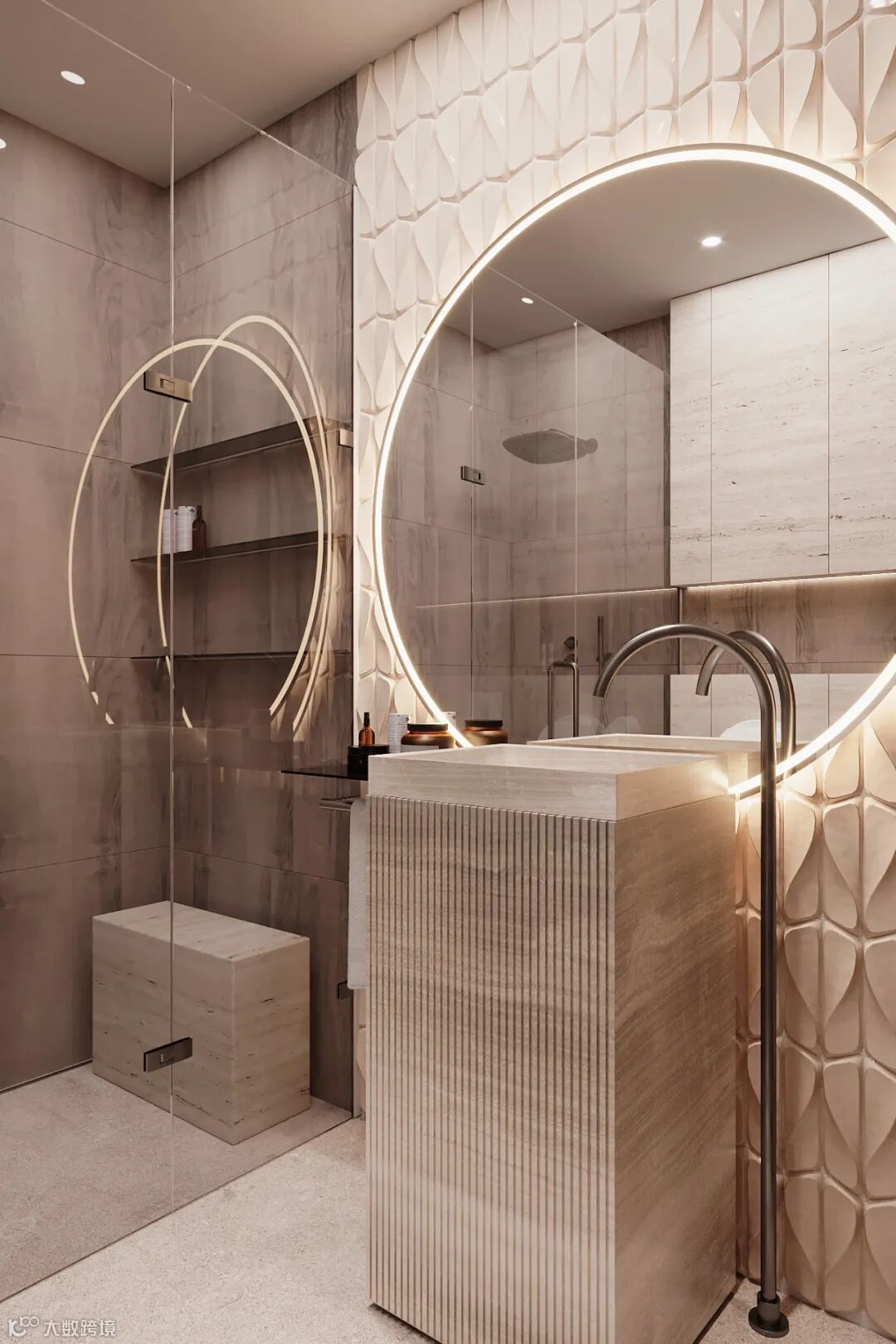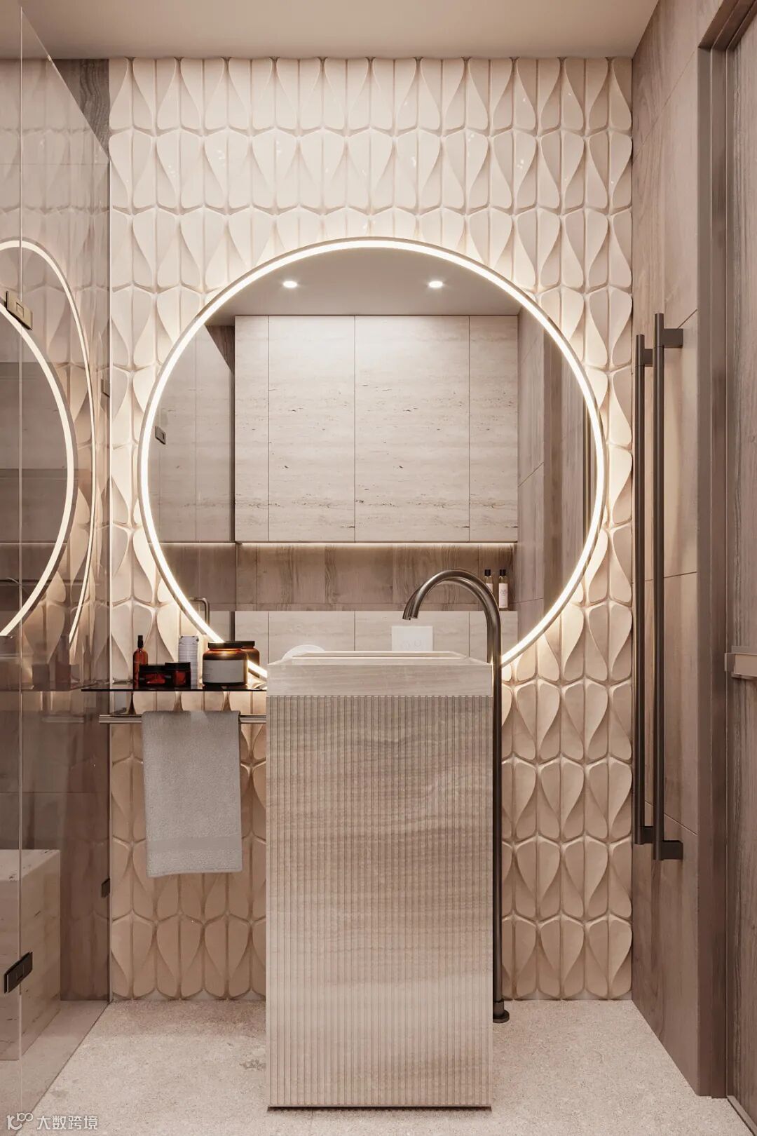 卫生间时尚前卫的背景,洗手台精致优雅,空间更有艺术感。
