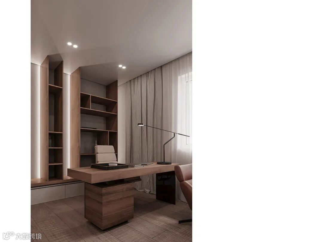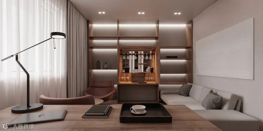 柜体打造出隔断却流通的空间,缓和了区域的界限木质的暖意,让一切都亦松亦驰。