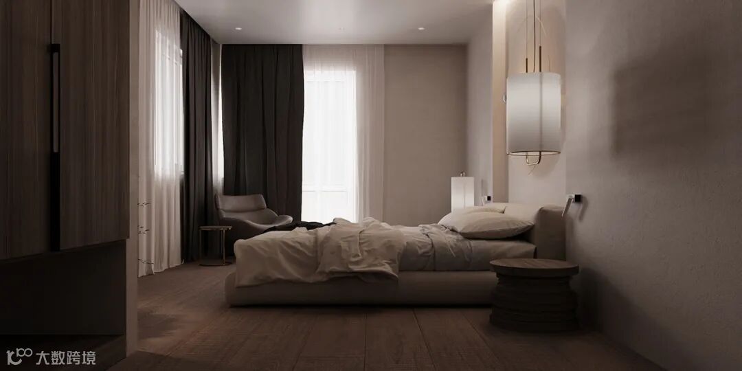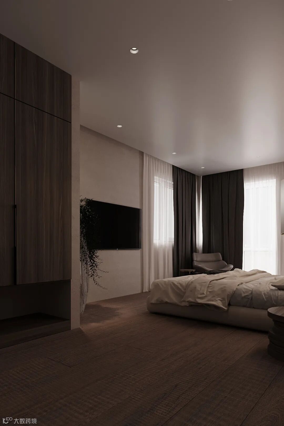 次卧浅灰色调,自然非凡,精致的气韵在此间静谧地生长。