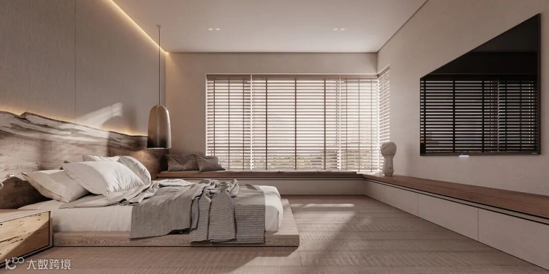 光线透过百叶窗进入室内,柔和的光影慵懒了时光。