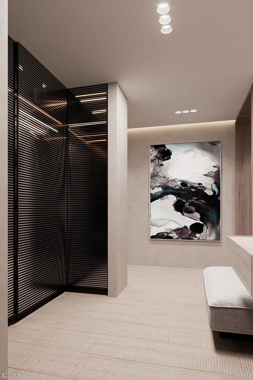 玄关一镜一画彼此满足了简约空间视觉艺术上的平衡与点缀效果。