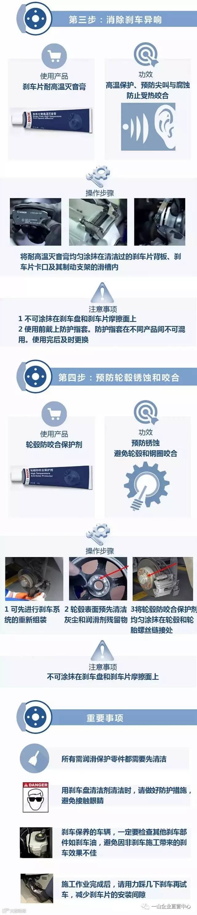 ★步骤分为四项:油垢清洁-----分泵润滑-----消除刹车异响-----预防轮毂锈蚀和咬合.