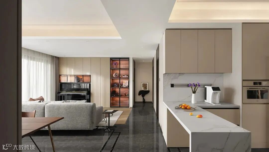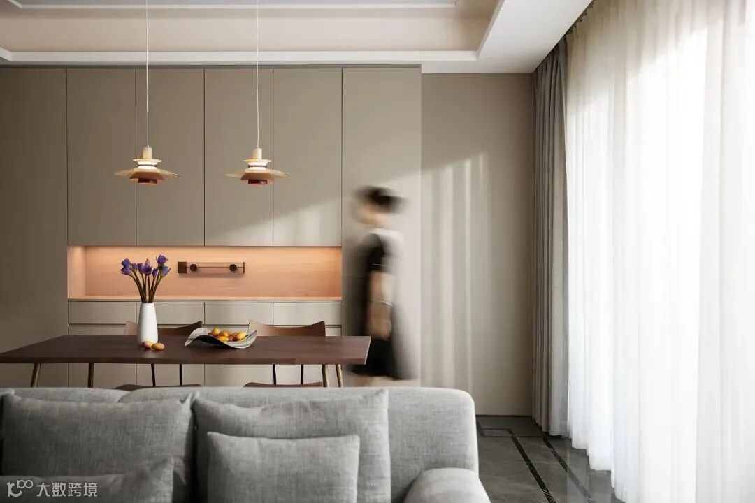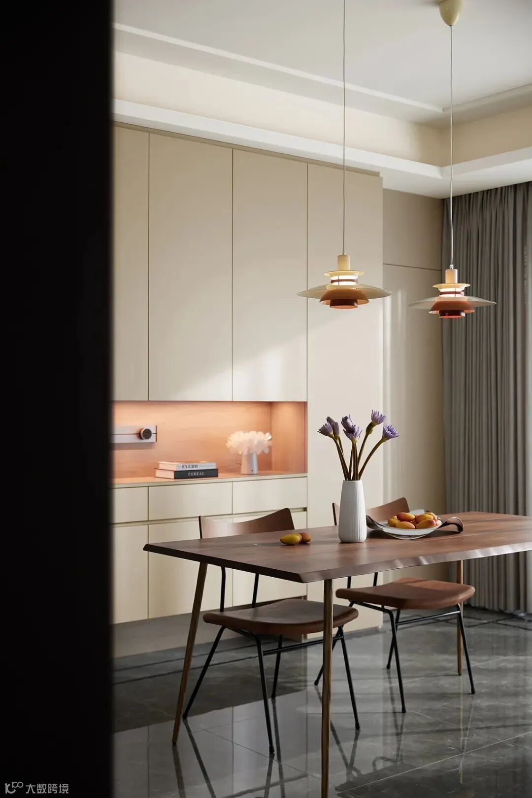 奶茶色温暖的调性充满了治愈力,高级又时尚的色相,一定程度上赋予了空间耐看和舒适感。