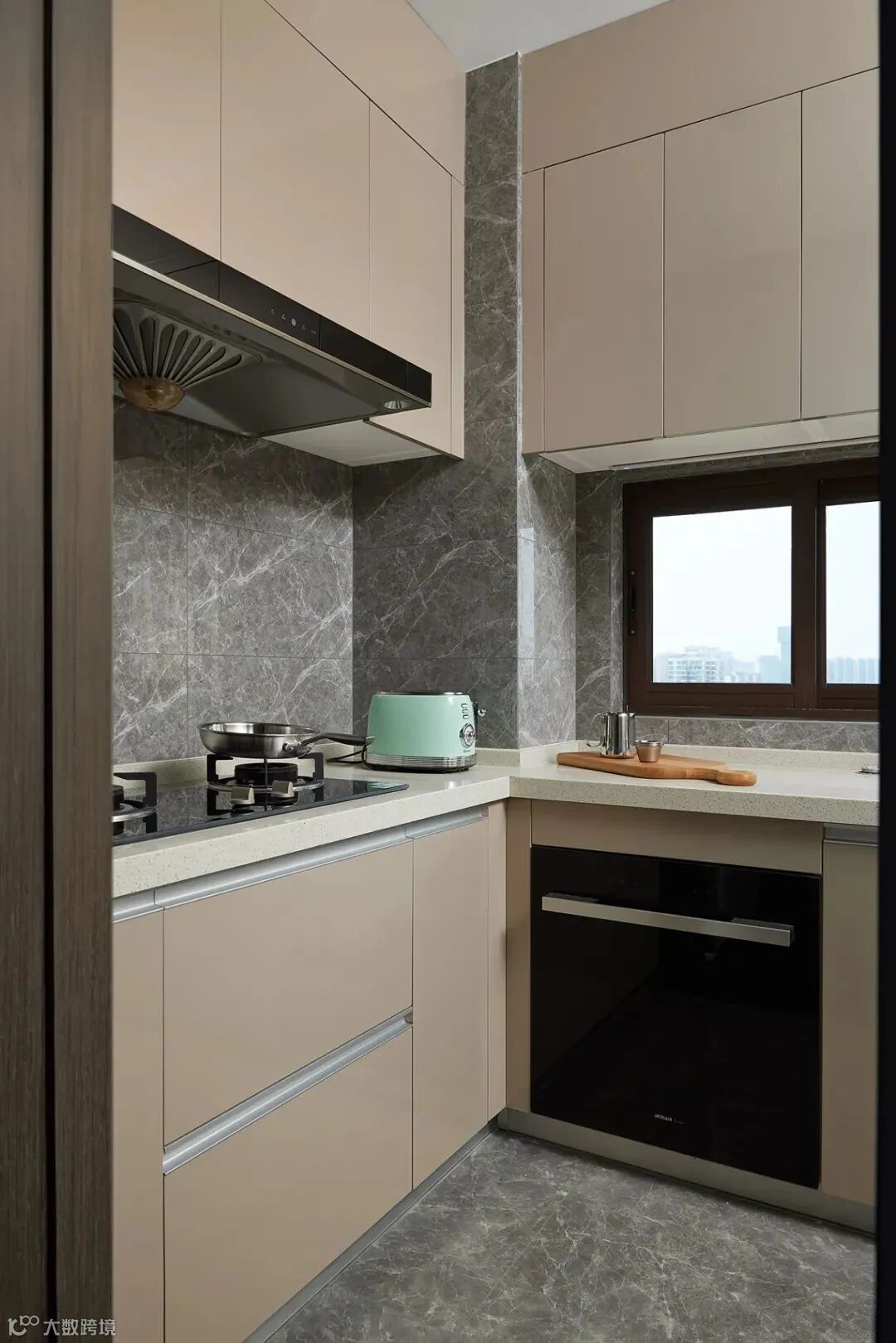 L型厨房布局灵活多变,使得厨房可以和其他空间的衔接更加自然,因此大小空间都可以用L型布局,收纳能力较强,小空间也可以实现空间的最大利用。