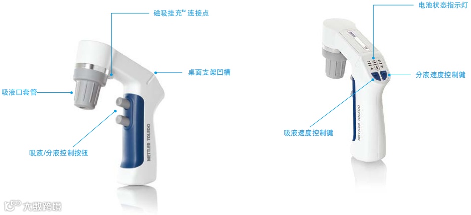 匹配所有类型的1 mL至100 mL血清和微量移液管,可转移0.1 mL至100 mL的液体。