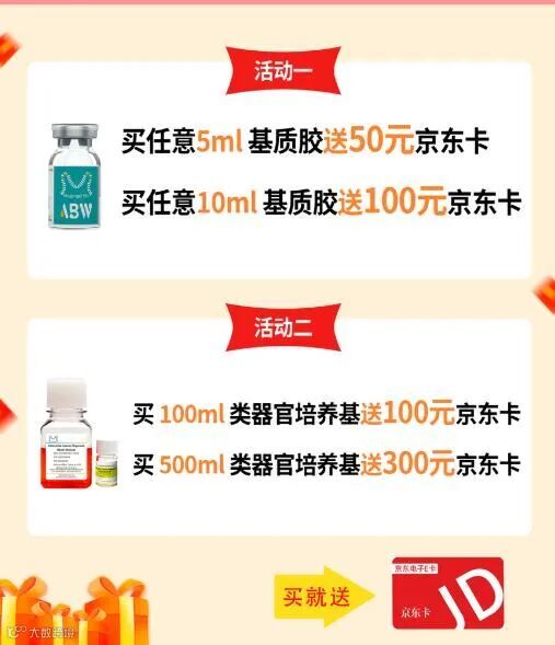 11.1-11.15,我们针对低生长因子、高浓度、类器官专用基质胶推出6.5折优惠,具体如下: