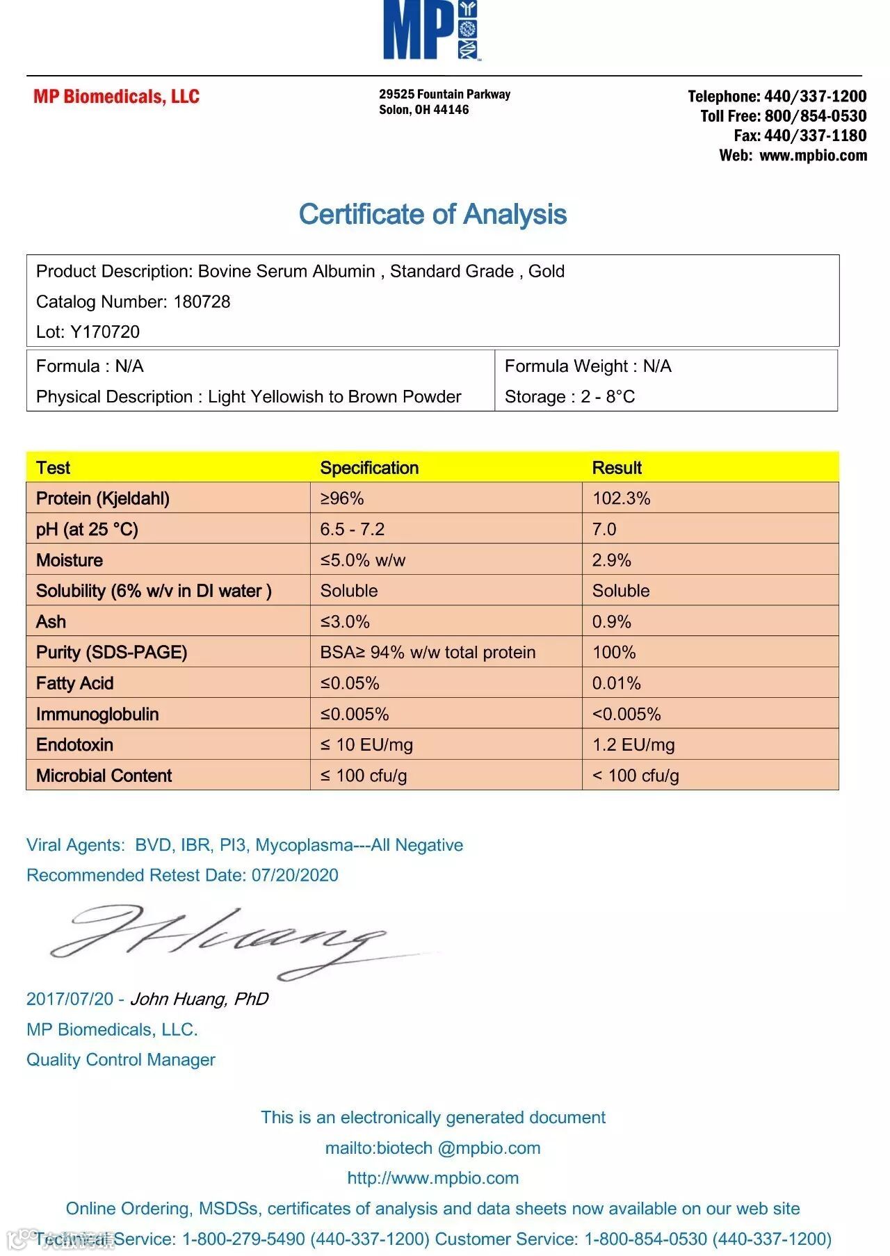 经热处理的普通BSA产品,可作为组织细胞(微生物、动物及昆虫细胞等)培养养料和培养成分以及蛋白分子量标准组份,为性价比较高的BSA产品。