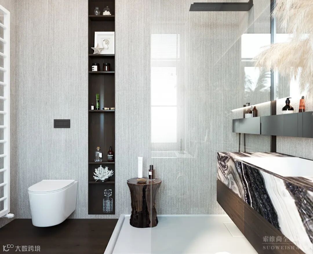 左侧的收纳柜体,分区式强大功能给人居于事物齐备的心安。