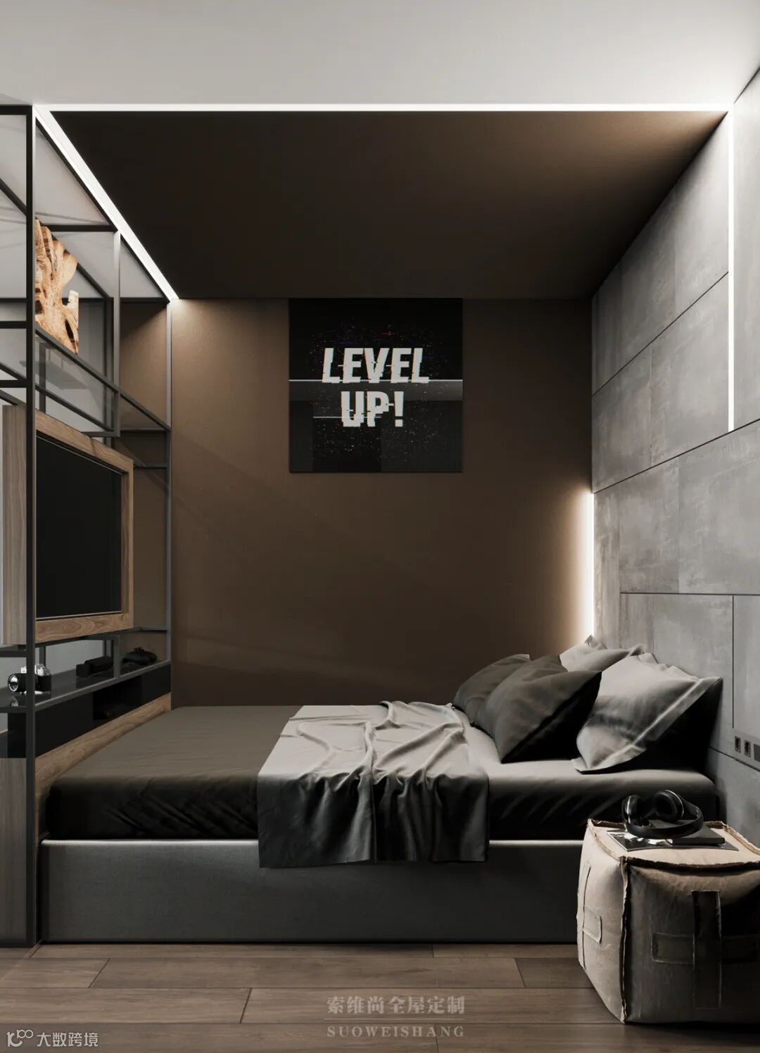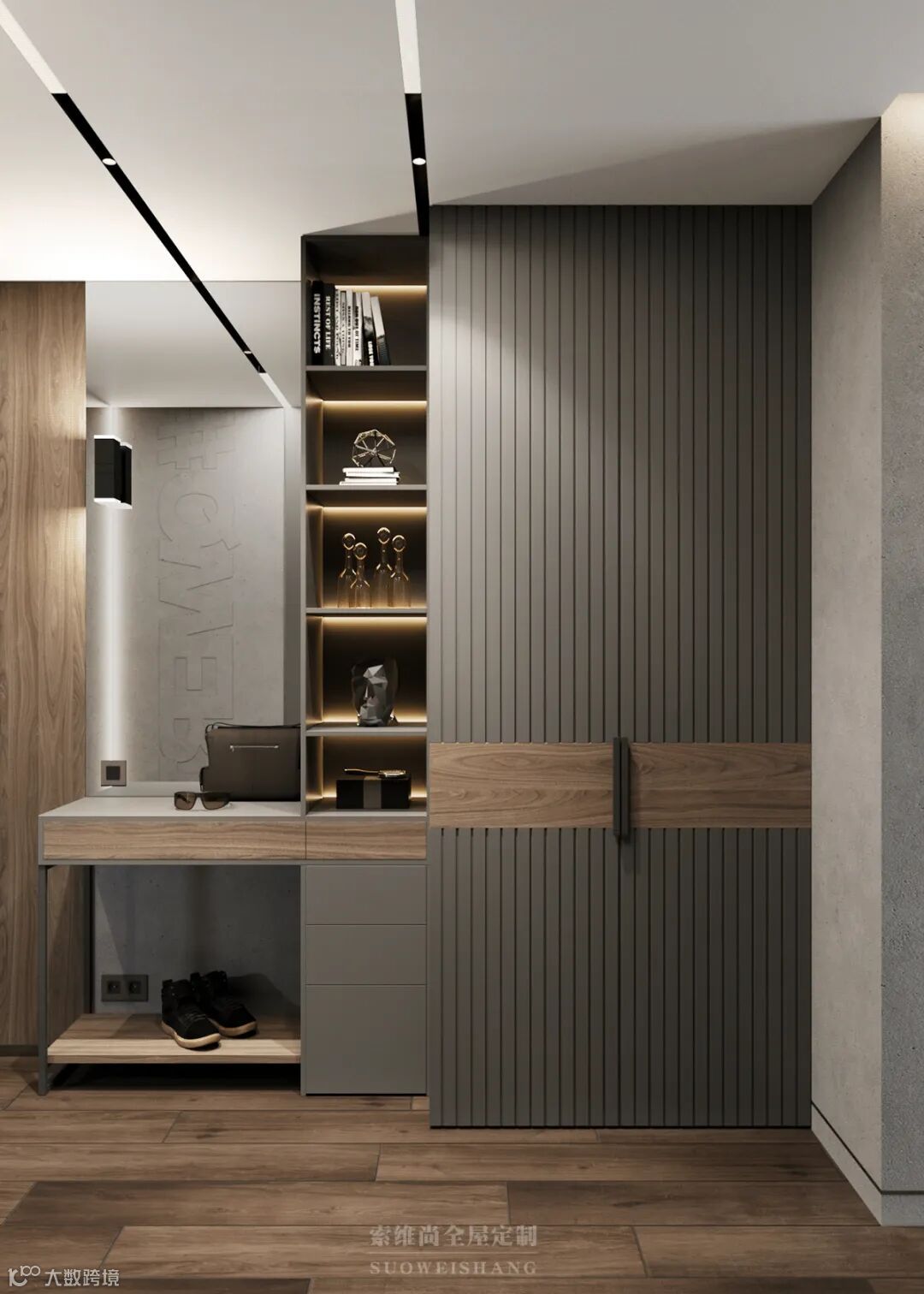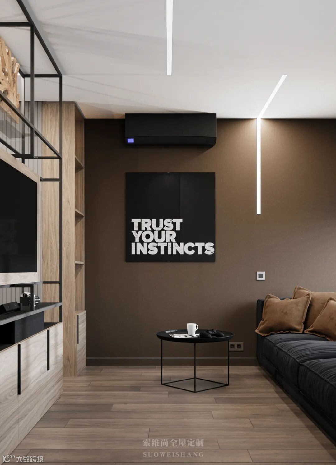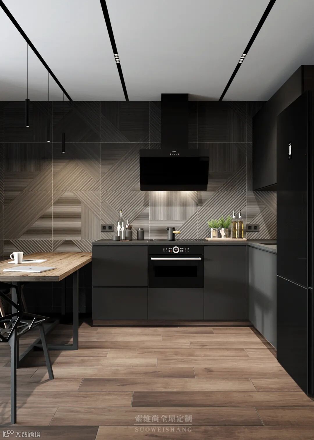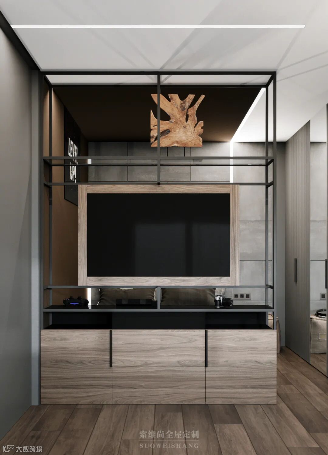 至简的线条设计,没有一处多余的修饰,你千万别以为这是没有追求,因为黑色、灰色的世界中,那一抹亮眼的木色,足以表达卓尔不群的个性。